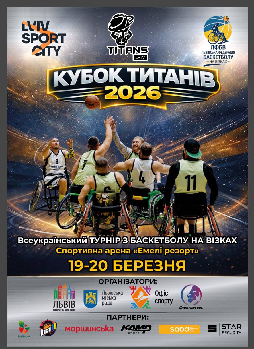 Спільно з друзями та партнерами готуємо всеукраїнський турнір з баскетболу на візках «Кубок Титанів 2026» Кубок Титанів 2026, обіцяє стати наймасштабнішим національним турніром за всі роки незалежності! України. 19-20 березня Зареєстровані 9 команд. Спортивна арена Емілі Резорт.